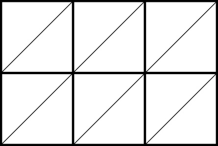 ![]() | Then add diagonal lines, going down to the left, to cut each square into two segments. |