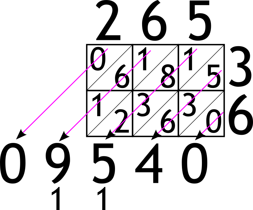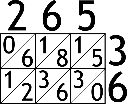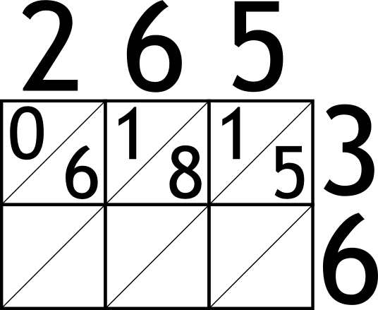 create a grid of the same size as the digits of the sum ie 265 x 36