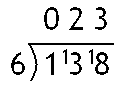 Now we divide 6 into 13 which goes 2 times with one left over: