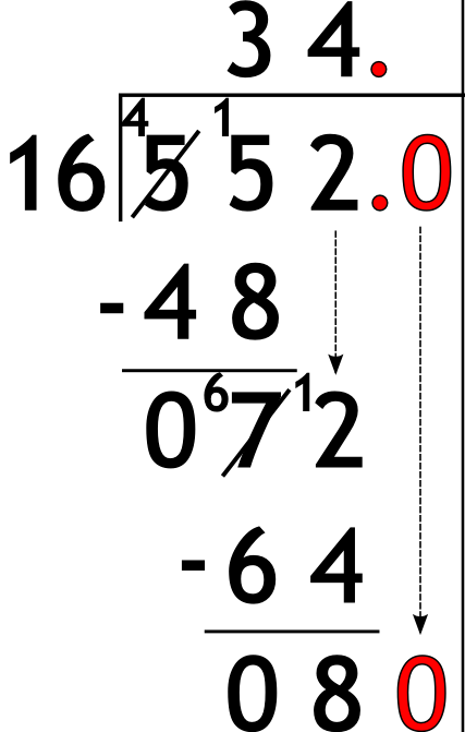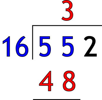 Here is 552 ÷ 16 in small stages to make the method clear.