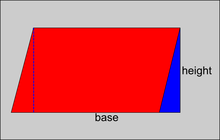 The area of any parallelogram is the same as a rectangle of the same length.