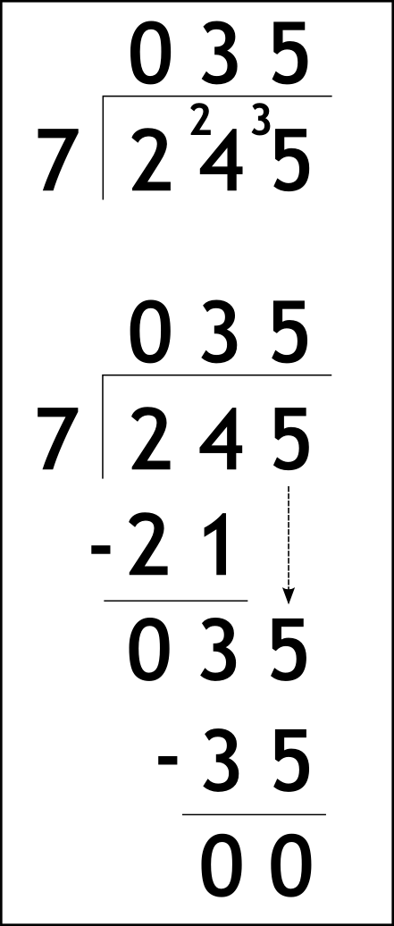 process written out formally. Here is 245 ÷ 7 using both methods: