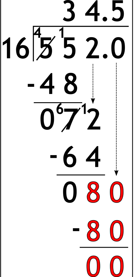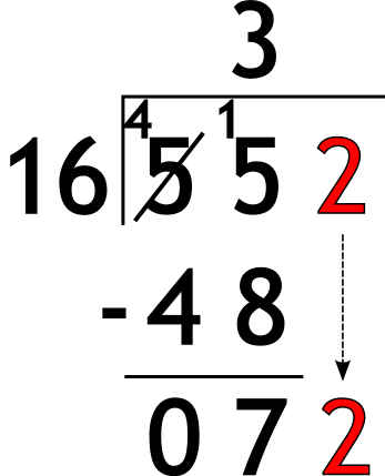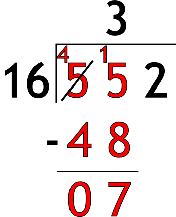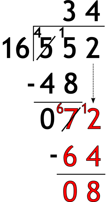Here is 552 ÷ 16 in small stages to make the method clear.